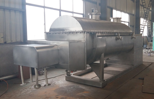 槳葉干燥機(jī)在內(nèi)部設(shè)有攪拌漿裝置,作用是讓濕的物料在攪拌漿裝置-槳葉的攪動(dòng)作用下,與熱載體以及熱表面充分接觸,例如,楔形槳葉傳熱面具有清潔功能,物料顆粒與楔形面的相對(duì)運(yùn)動(dòng)產(chǎn)生洗刷作用,達(dá)到干燥的目的。槳葉干燥機(jī)有熱風(fēng)式和傳導(dǎo)式兩種。熱風(fēng)式是通過(guò)熱載體,例如熱空氣和干燥物料互相接觸進(jìn)行干燥。